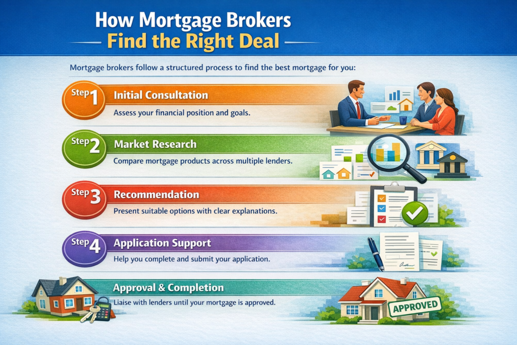 Mortgage brokers follow a structured process to find the best mortgage for you:
